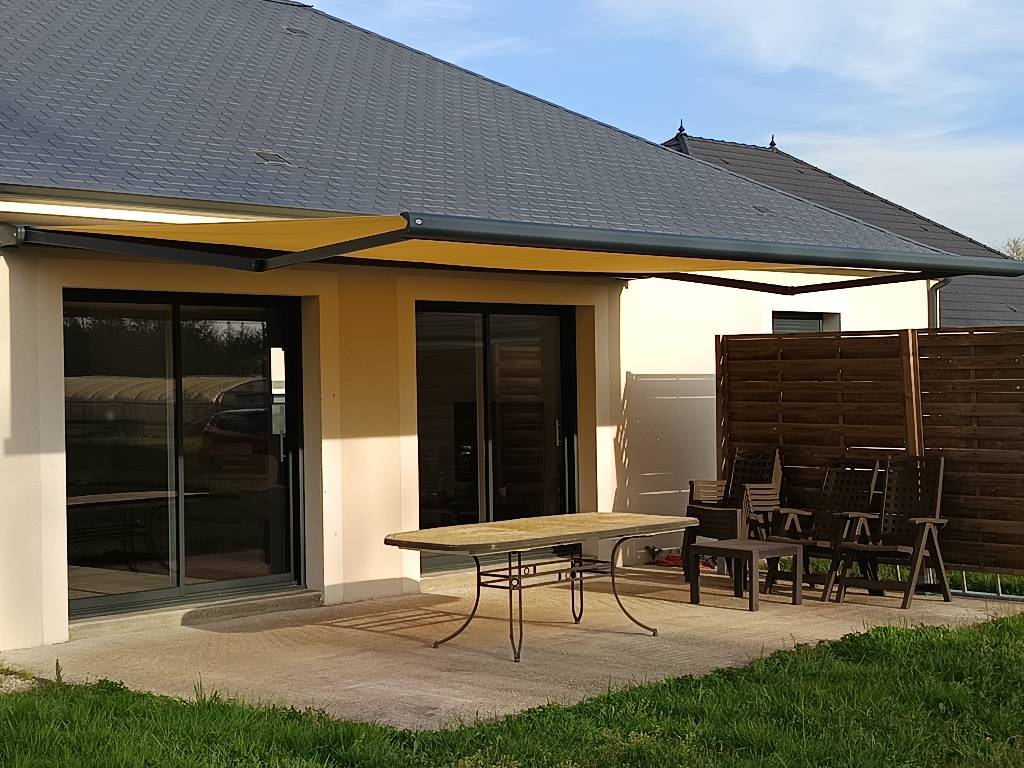 Avec ses dimensions généreuses (largeur 6040 mm x avancée 3750 mm), ce store offre une protection optimale contre le soleil tout en valorisant la façade de l’habitation.